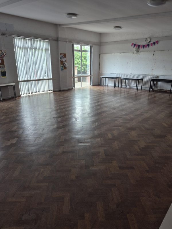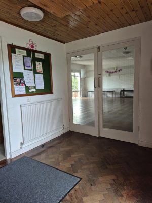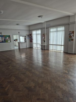 The Hall is a single room measuring 14m by 10m with a fully fitted kitchen and toilets. Unfortunately there are no disabled toilet facilities at present.